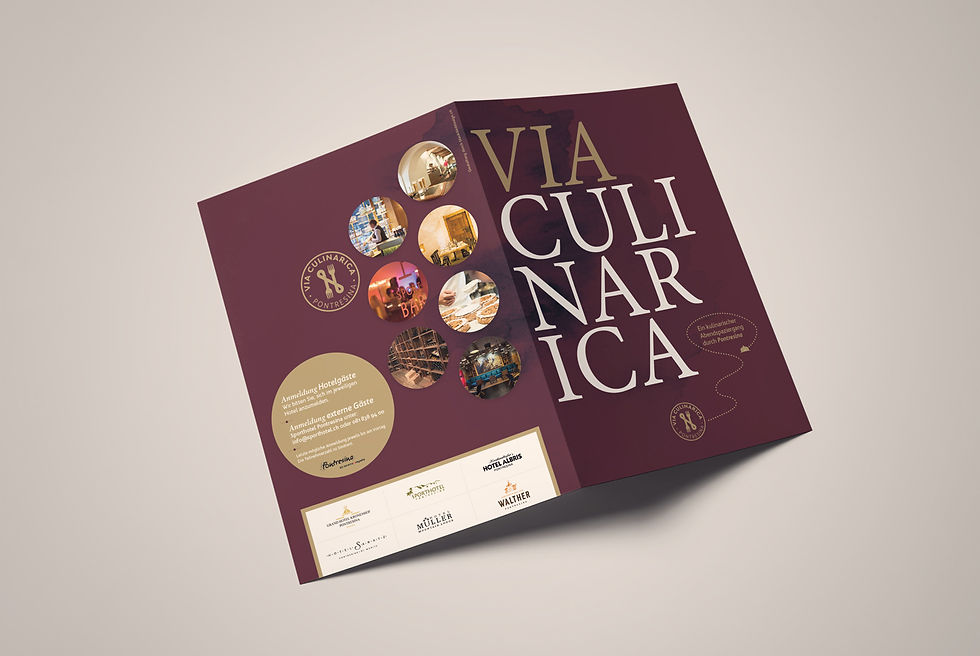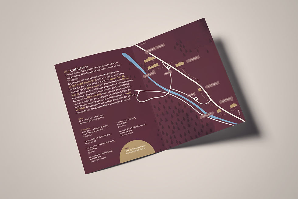 Im Auftrag von Pontresina Tourismus gestalteten wir eine Appetitliche Broschüre für einen kulinarischen Abendspaziergang durch Pontresina.